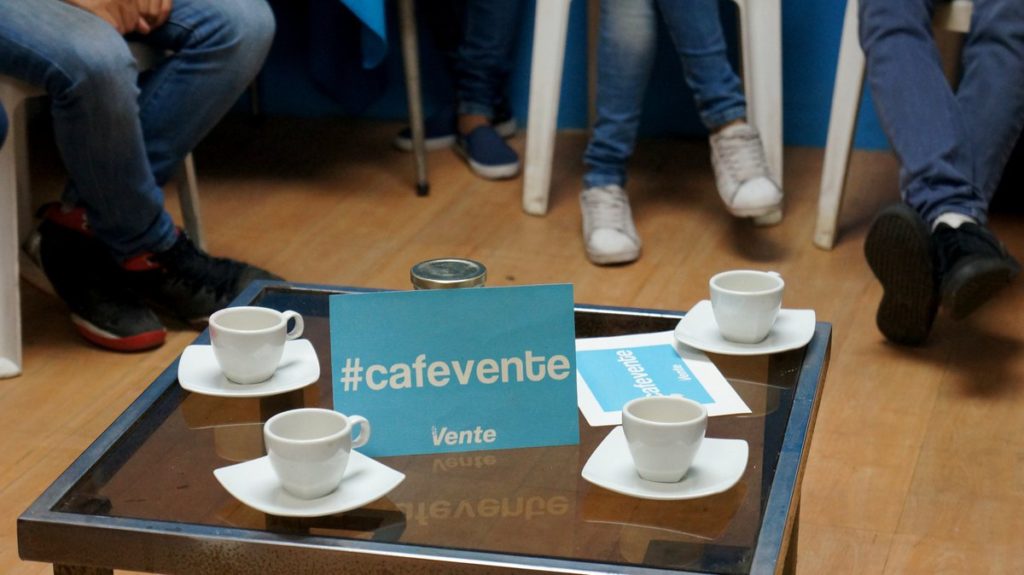 (Maracay. 14/12/2017) Este miércoles en horas de la tarde se llevó a cabo la segunda edición de Café Vente, una iniciativa llevada por el equipo regional de Vente Venezuela en el estado Aragua. En esta ocasión, los protagonistas de este encuentro fueron Konrad Montero y Juan Viale Rigo, quienes conversaron con los jóvenes del partido de la libertad sobre redes sociales y marketing.