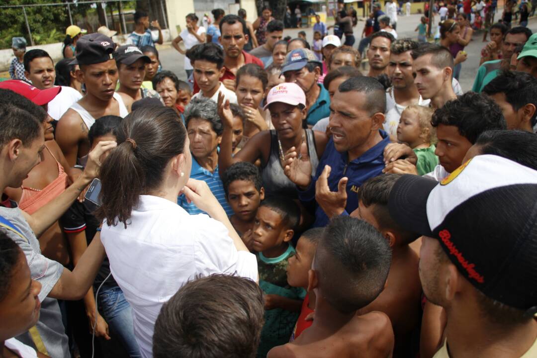 Camino a una asamblea en Caripito, también en Monagas, María Corina y los diputados de Vente Venezuela Juan Pablo García, Carlos Bastardo y Omar González pararon en una protesta en el sector Pinto Salinas donde, producto de la lluvia, las casas están inundadas y los ciudadanos sufren por enfermedades como sarna.