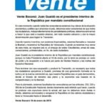 Juan Guaidó es el presidente interino de la República por mandato constitucional, porque no hubo Presidente electo el 10 de enero, por lo tanto se produjo un vacío de poder y la ocupación a la fuerza por parte de Nicolás Maduro y las mafias del Ejecutivo Nacional.