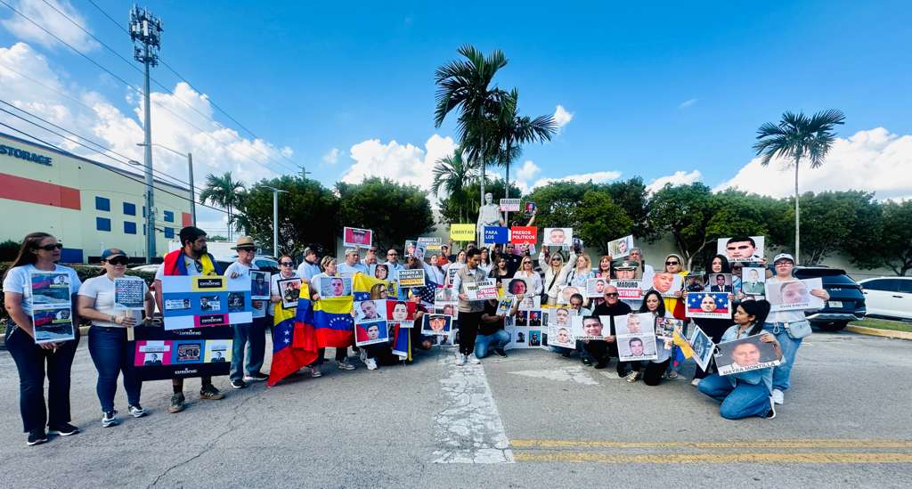 Miami (9 de noviembre de 2025) venezolanos en el exilio se concentraron este sábado en El Arepazo Restaurant, para llevar a cabo el Gran Pancartazo por la Libertad de los Presos Políticos en Venezuela, una jornada de denuncia ciudadana que busca visibilizar la crítica situación de quienes hoy se encuentran privados de libertad por razones políticas bajo el régimen de Nicolás Maduro.